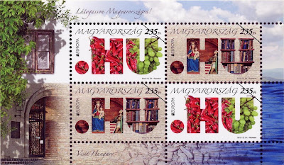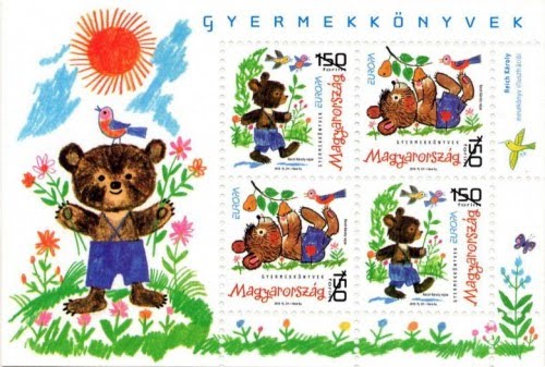 this 235.- HUF stamp is part of a souvenir-sheet of 4 stamps designed by Ágnes Rozmann.